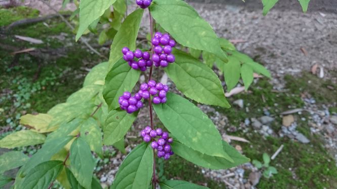 庭に紫式部の花が咲き色づいていました。とっても美しい色です。