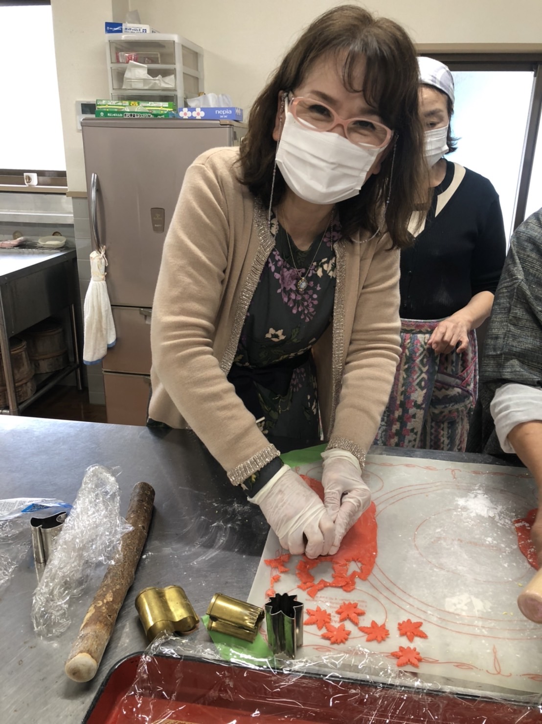 季節のイチョウや紅葉の型抜きをしたり 干菓子の型押しを初めて経験いたしました。