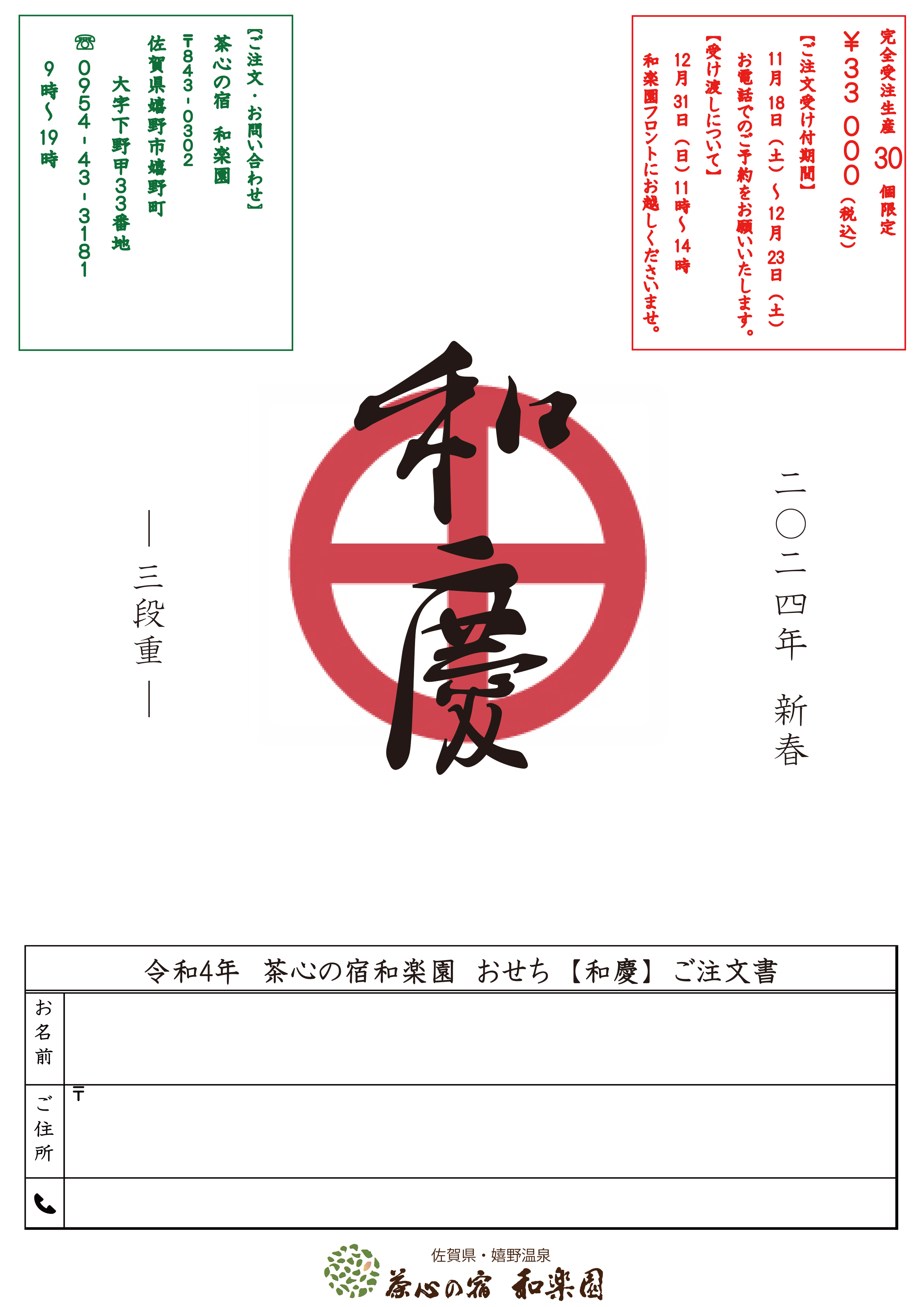 NEWS令和6年 和楽園おせち「和慶」予約開始のお知らせ