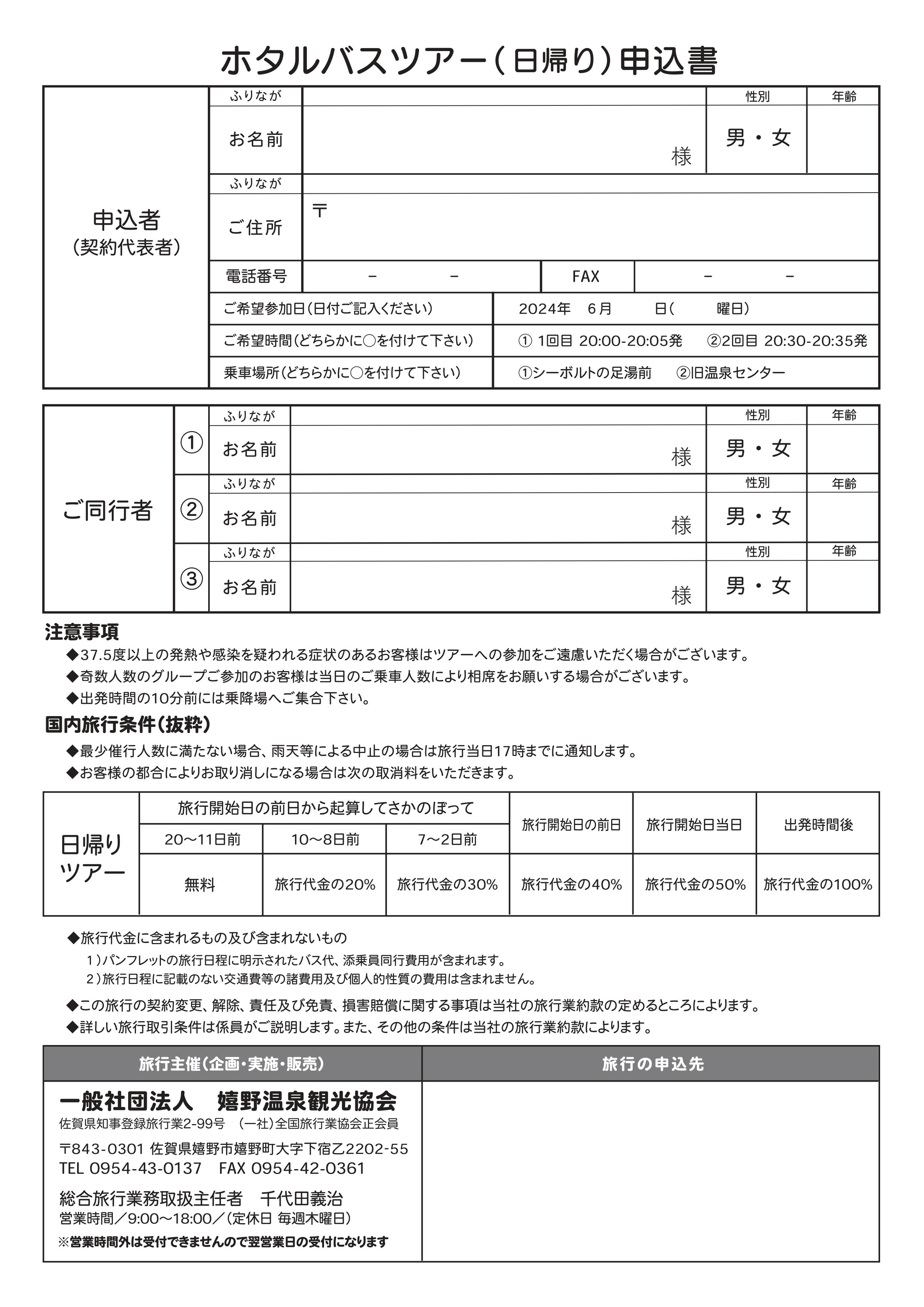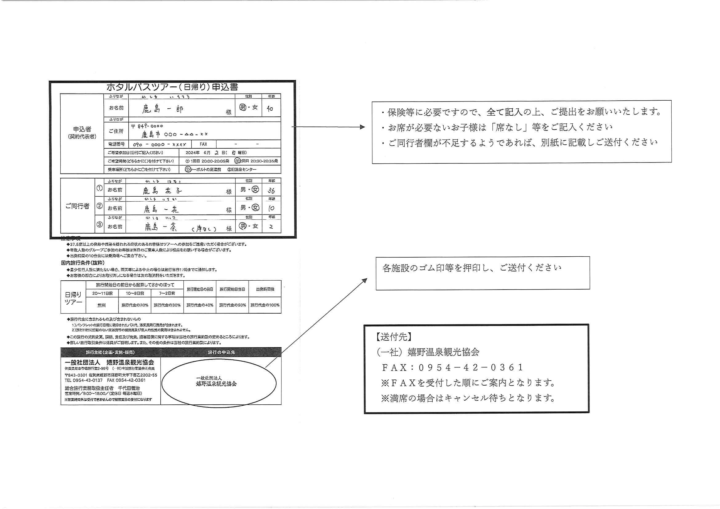 ※今年度より、ツアー保険等の関係で参加のお客様すべてのお名前が必要となります。詳細は別紙をご確認ください。