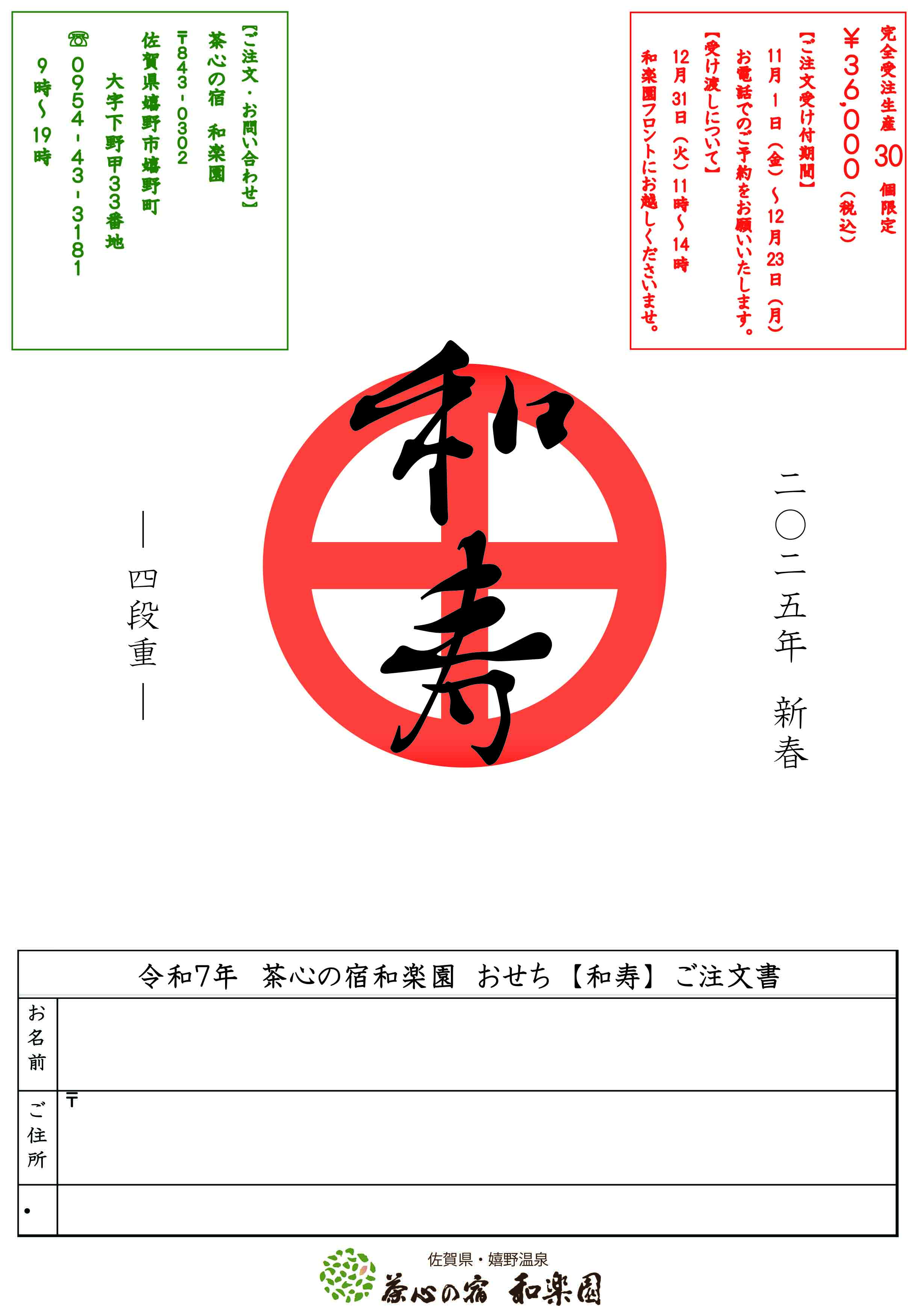 【令和7年 茶心の宿和楽園 おせち】